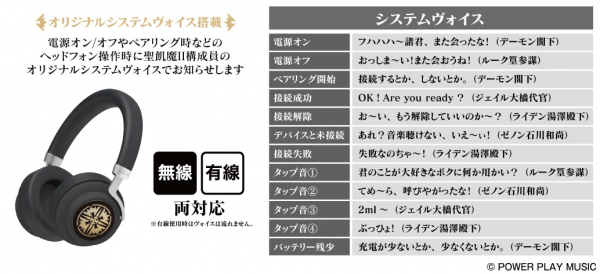 本モデルは聖飢魔II構成員5名(デーモン閣下、ライデン湯澤殿下、ゼノン石川和尚、ルーク篁参謀、ジェイル大橋代官)の貴重な新規録り下ろしヴォイスを12種類搭載し、ハウジング部にはアルミ製のプレートで各構成員の顔の模様(右側)、紋章(左側)を装飾した豪華な仕様となっております。