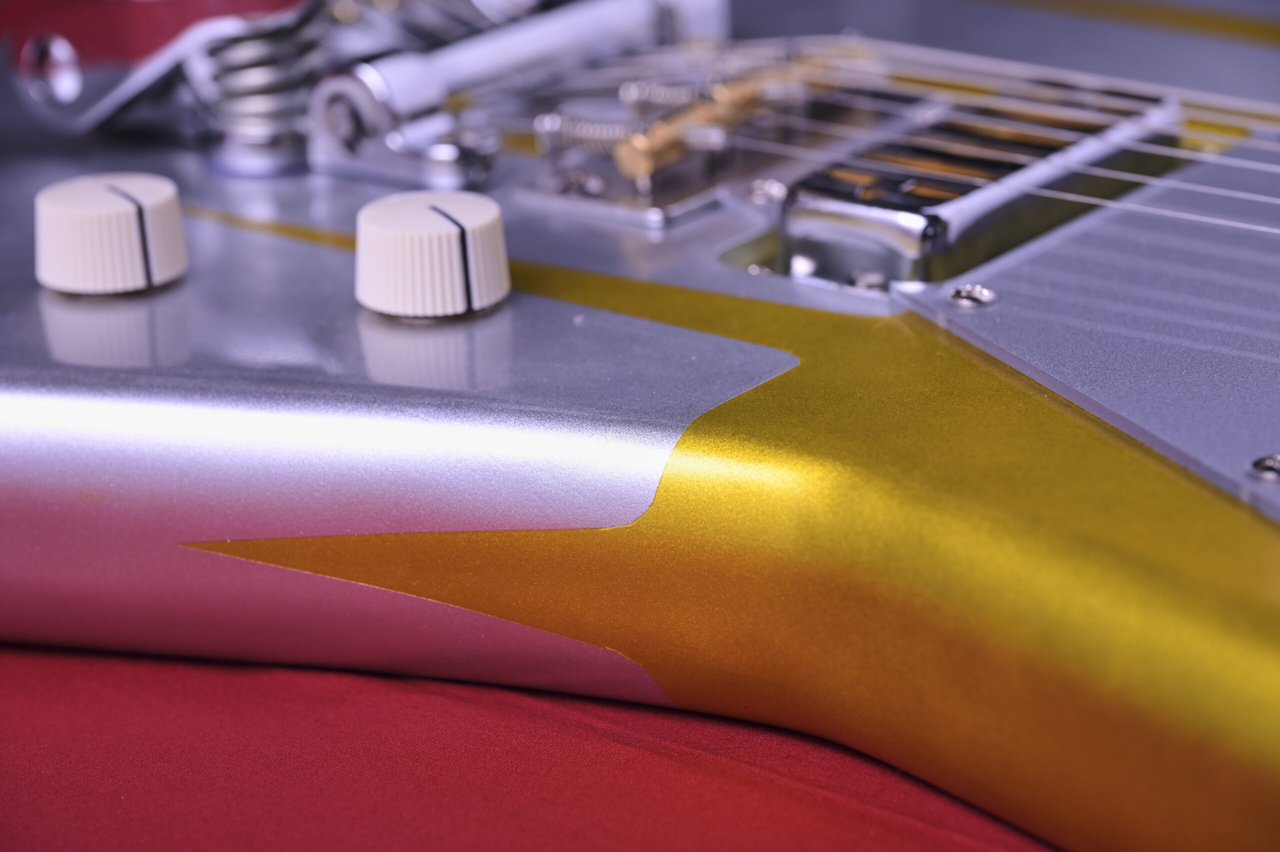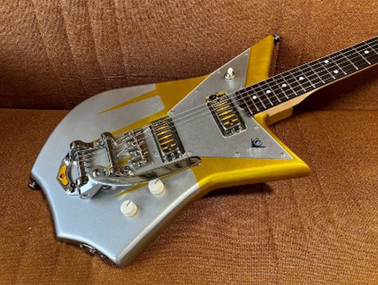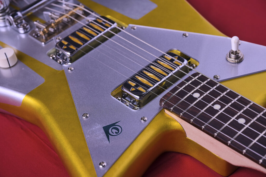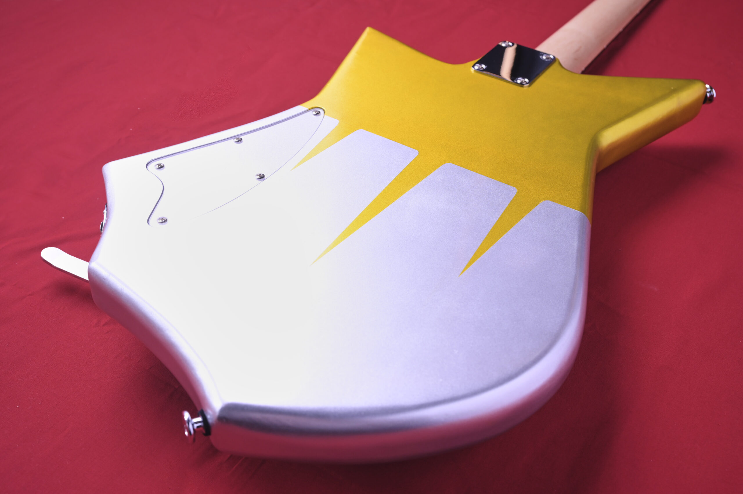 今回はボディーの角をかなり丸めてロケットみたいなイメージ。よりミッドセンチュリー なテイストのアトミック・デザインを盛り込んだゴールドとシルバーのツートンカラー。