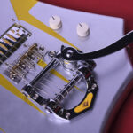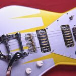 またビグスビー風のレトロなトレモロアームをマウントして、さらにロケット的な演出がされていて遊び心満載だ。とはいえ、アームに対応するためペグをマグナムロックにしてあったり、コンパクトであるがミニハムを搭載しているところは、サウンド面の実用性をしっかり考えられていてさすがだ。