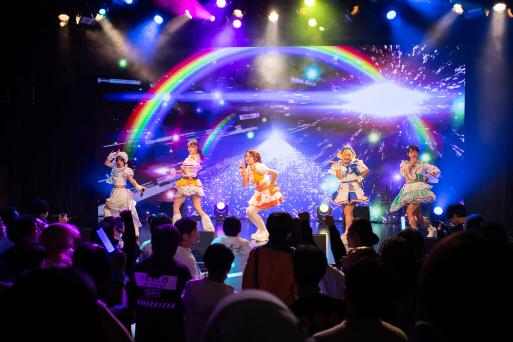 「O.T.A.K.U. O.T.A.K.U オタク!」と早口で歌う5人の声からスタート。『ぎゅいぎゅい!マジカルステージ』でも、キラキラ煌めくカラフルな楽曲に乗せて、彼女たち自身が胸をときめかせてステージの上ではしゃいでいた。妖艶に攻めた『midnight parade』で彼女たちは、強気な心に染め上げ、観客たちを激しく、でも甘さも匂わせて挑発していく。その情熱的なアプローチに、胸が熱く揺さぶられていた。