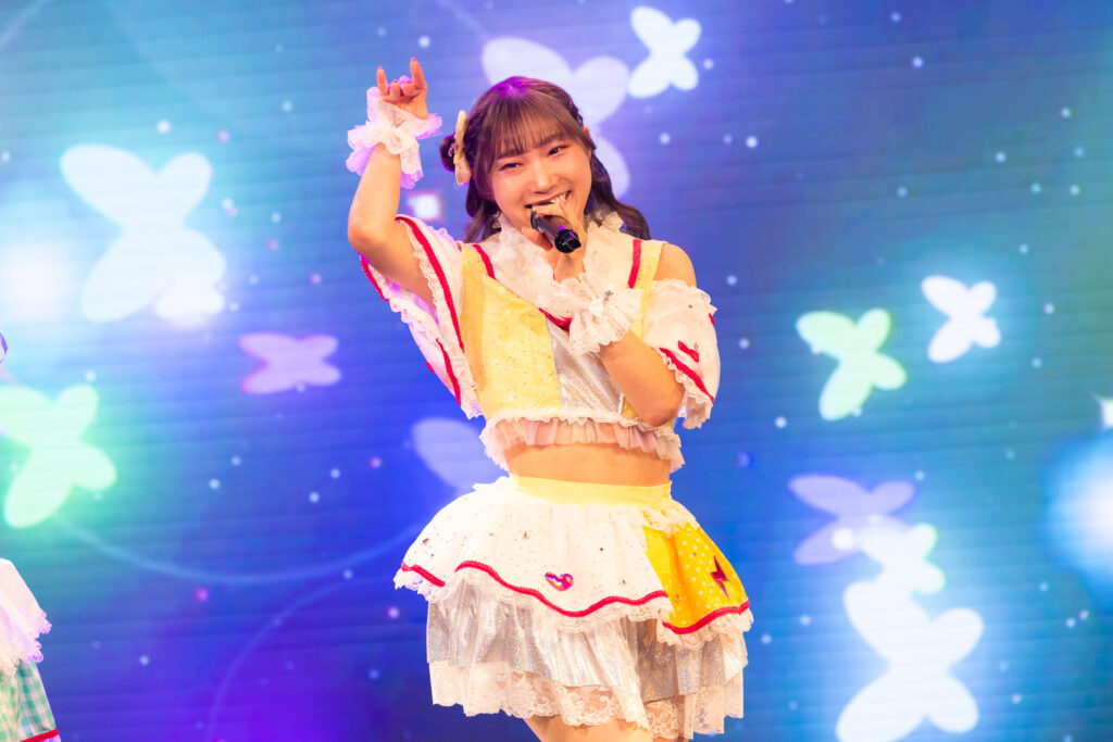 IQ99のライブは、この空間に色鮮やかな景色を描くように『ハッピーエンドストーリー』から幕開けた。眩しい笑顔ではしゃぐメンバーたち。その姿に向けて、フロア中からエールが飛び交っていた。5人の澄み渡る歌声は池袋harevutaiの天井を突き抜け、無限に広がる青空に響いていた。彼女たちの歌声や思いを一つにしたパフォーマンスに触れて、 気持ちが騒ぎだす。ライブはまだ始まったばかりなのに、ときめいた心の温度はぐんぐん上昇し続けていた。