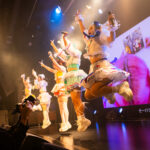 ライブでお馴染みの『ナカザワールドカオス』が飛びだしたとたん、場内のあちこちから、彼女らに向けて熱いかけ声が張り上がる。風を切って駆ける楽曲に乗せ、小ばぁびゐが自転車になって愛妹みいを乗せて走る場面も登場。5人のポジティブでハイテンションなパワーが、この会場を熱狂したカオスな空間に染め上げていった。