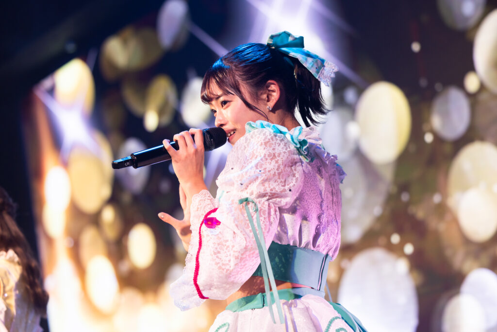 「さぁいこうぜ!」の声を合図に、彼女たちはアッパーでダンサブルな『ぼくらと生きるしかないって』を元気いっぱいに歌っていた。BPMの速い楽曲に乗せ、みんなで「せーの」の声に合わせて大きくジャンプをしながら、5人と観客たちはこの空間を「楽しい」色に染め上げていった。