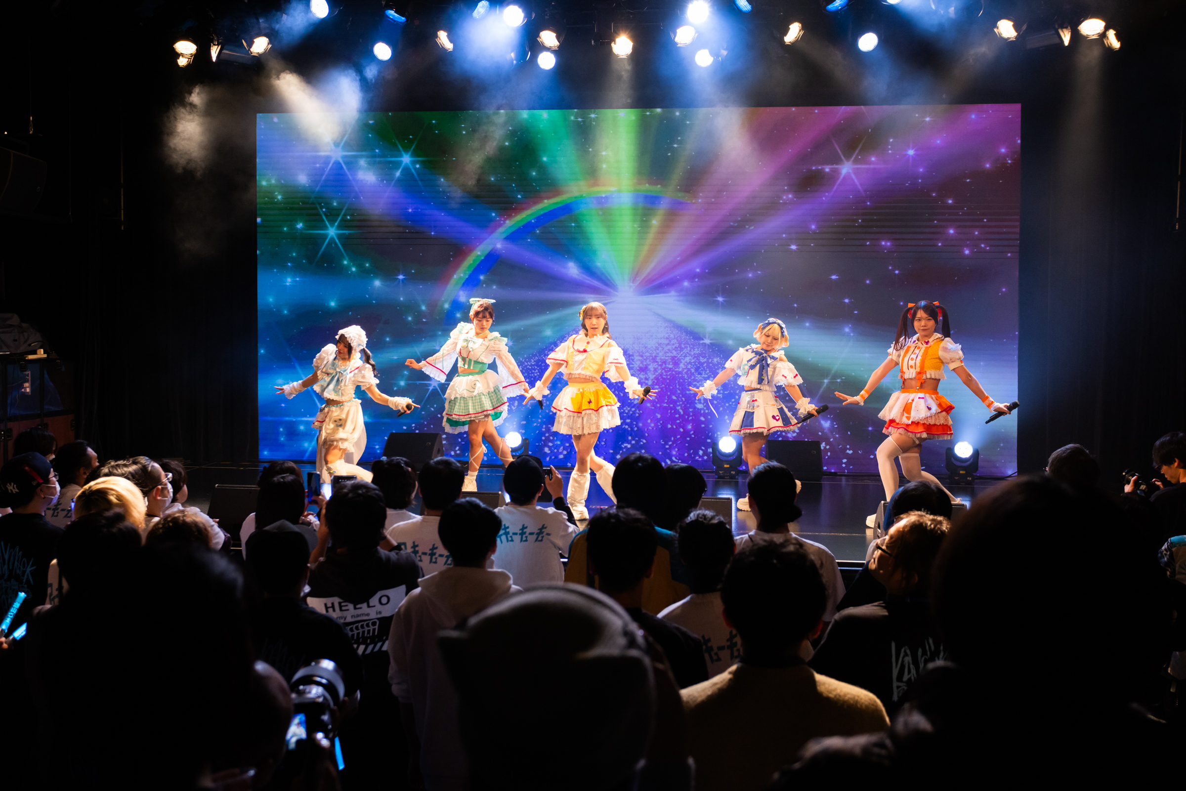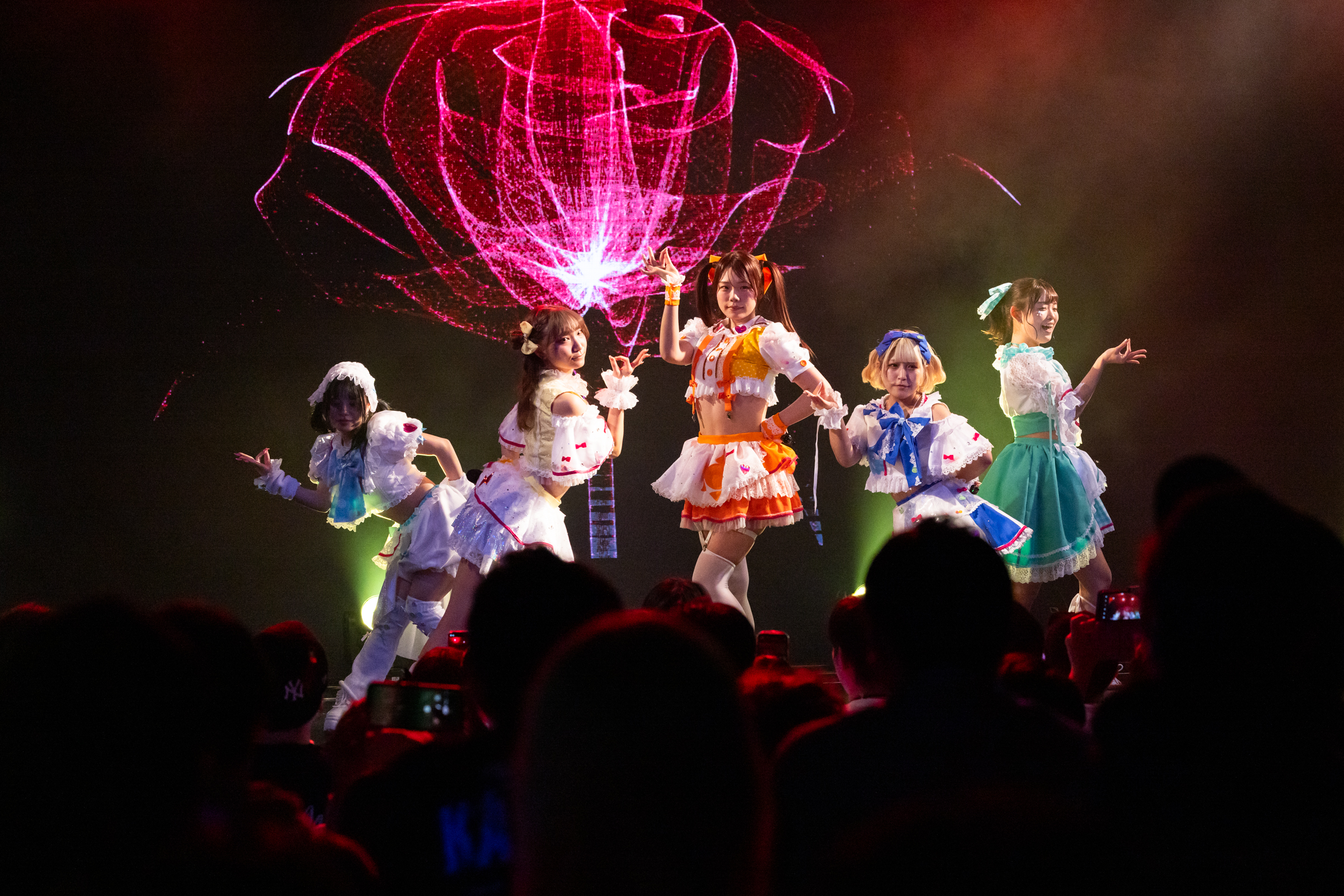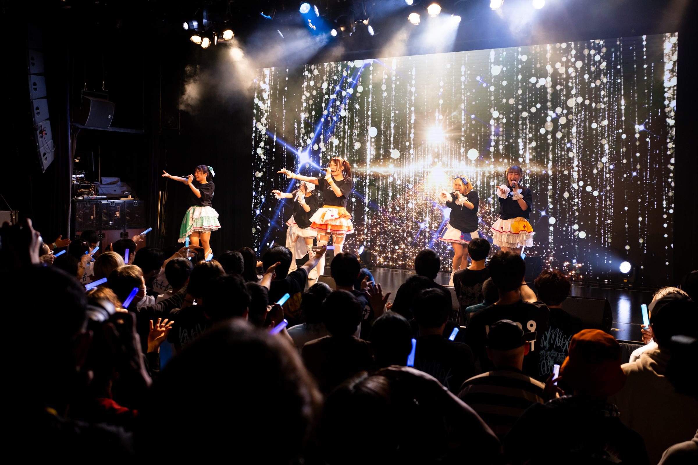 「O.T.A.K.U. O.T.A.K.U オタク!」と早口で歌う5人の声からスタート。『ぎゅいぎゅい!マジカルステージ』でも、キラキラ煌めくカラフルな楽曲に乗せて、彼女たち自身が胸をときめかせてステージの上ではしゃいでいた。妖艶に攻めた『midnight parade』で彼女たちは、強気な心に染め上げ、観客たちを激しく、でも甘さも匂わせて挑発していく。その情熱的なアプローチに、胸が熱く揺さぶられていた。