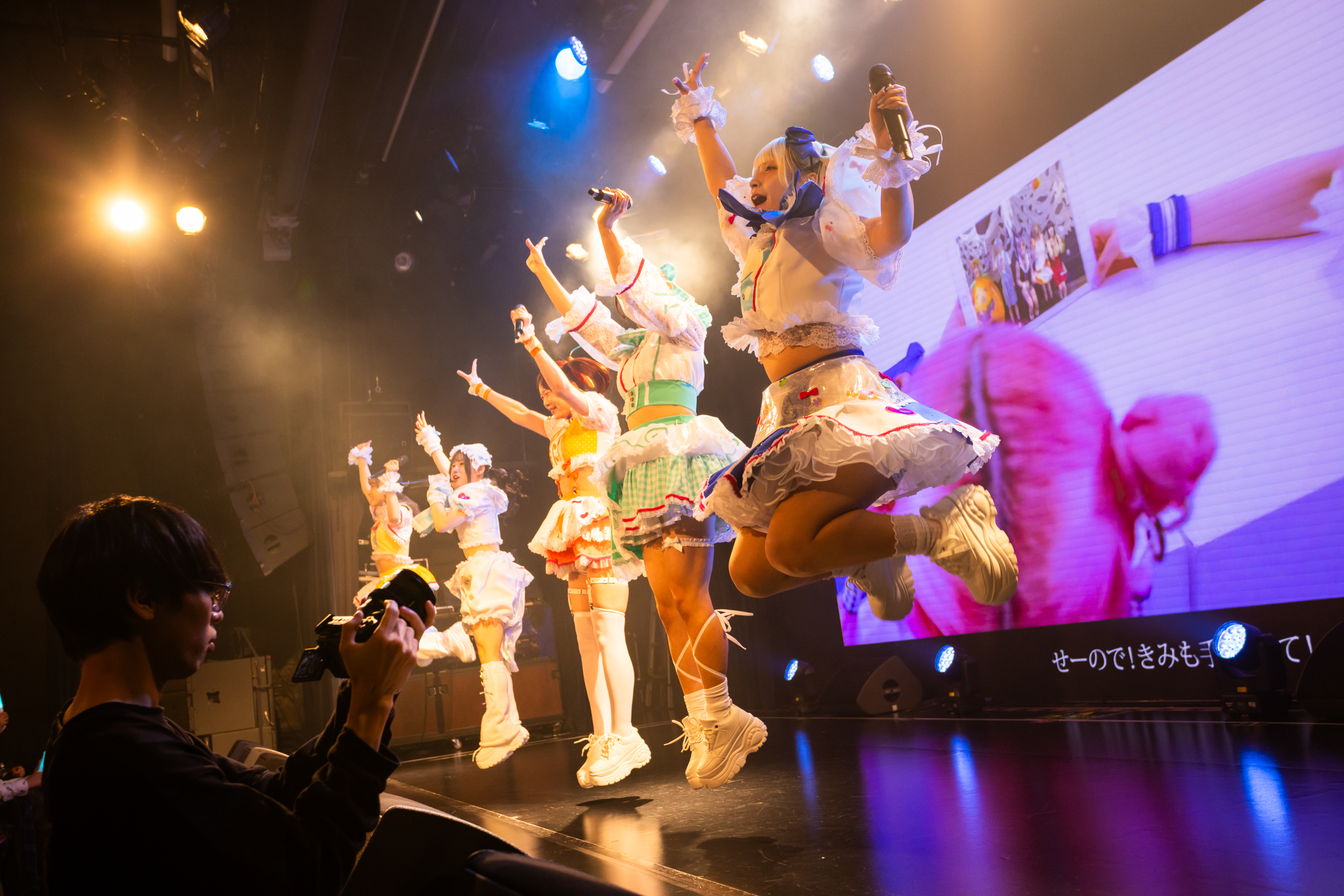 「さぁいこうぜ!」の声を合図に、彼女たちはアッパーでダンサブルな『ぼくらと生きるしかないって』を元気いっぱいに歌っていた。BPMの速い楽曲に乗せ、みんなで「せーの」の声に合わせて大きくジャンプをしながら、5人と観客たちはこの空間を「楽しい」色に染め上げていった。