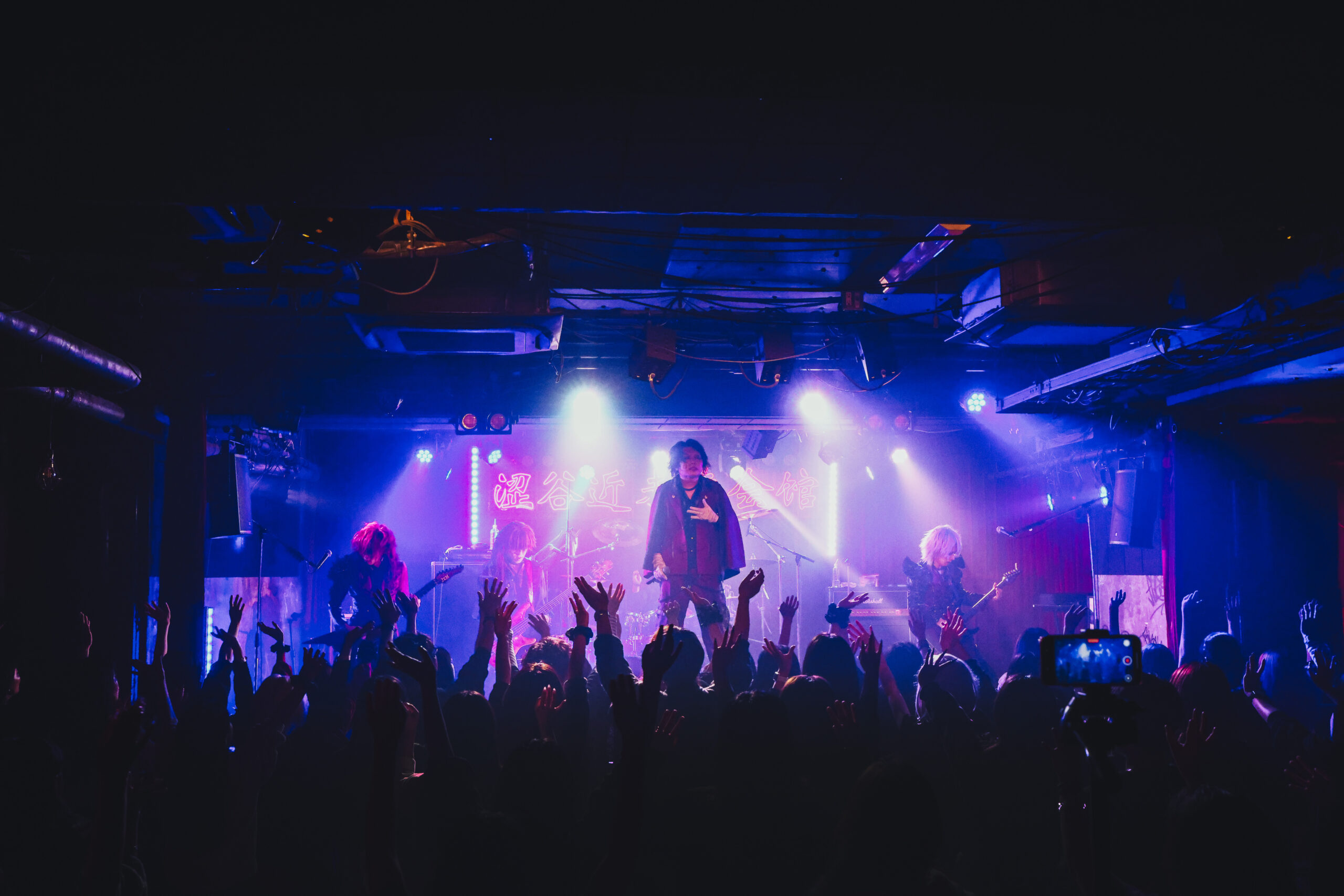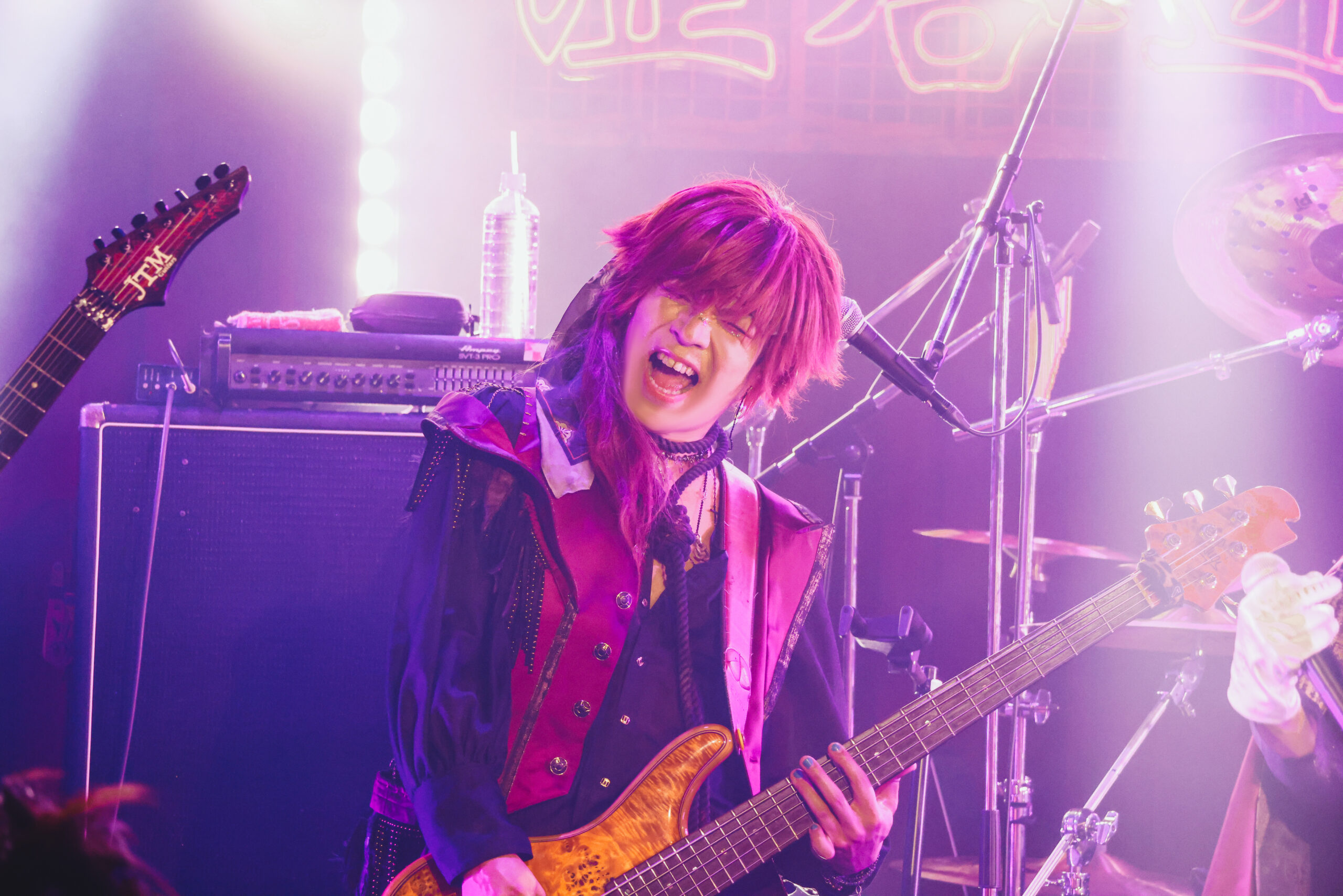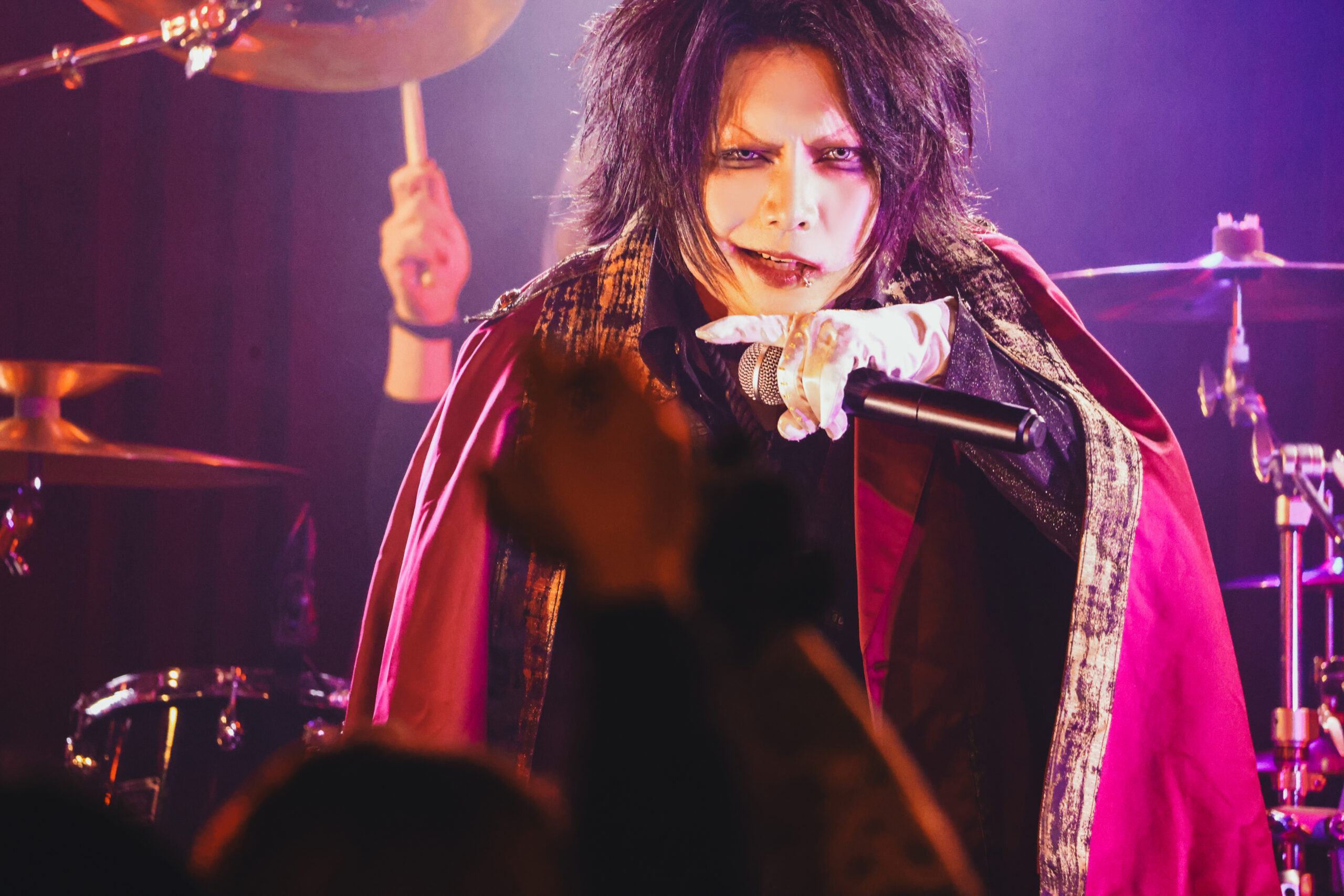 「よくきたな、弱虫ども。今日は思う存分祝い倒してくれるんだろうな」と煽る柳。その気迫に気迫で応じようと、『…嗚呼、無様』でもフロア中に振り乱れる髪の毛の嵐が巻き起こっていた。胸を熱く揺さぶるエモいサビ歌に触れて無数の手の花が揺れ、絶叫が咲き誇る。彼らはさらに激しく畳みかけ、弱虫たちを熱狂と興奮の坩堝へ巻き込もうと『地獄行き』を演奏し、弱虫たちを高く、これまで以上に高く激しく飛び跳ねさせていった。全身を奮い立てて熱唱する柳の姿も、今宵はひと際神々しく見えていた。