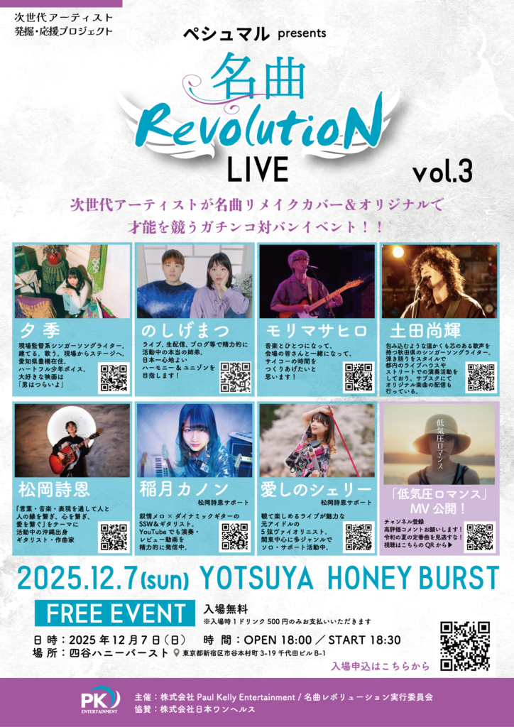 名曲リメイクカバー&オリジナルで才能を競うガチンコ対バンイベント!