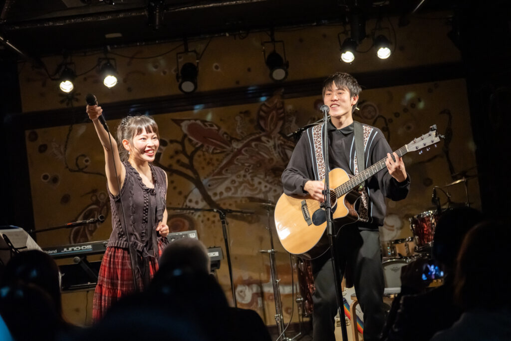 奏多の奏でるギターの音が、切れの良いビートに乗って軽やかに駆けだした。2人は『桜トンネル』を通して、少し甘酸っぱい思いを、舞い踊る歌声の花びらにして一人一人の心へ届けてくれた。続く『君の好きなところ』でも2人は晴々とした演奏や美しいハーモニーに乗せ、「好き」という胸弾む思いを真っ直ぐに伝えてくれた。その歌声は、2人から「好き」の告白を受けているようだった。