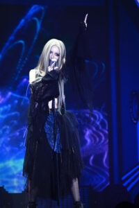 黒マントに覆われた、今までの「青=Vxerカラー」を基調としたスタイルとは一線を画いているTSUCASA。曲が始まり「Inspire!」のワードとともにコートを脱ぎ捨てると、黒を基調としたキャミソール、ミニスカート姿で登場!