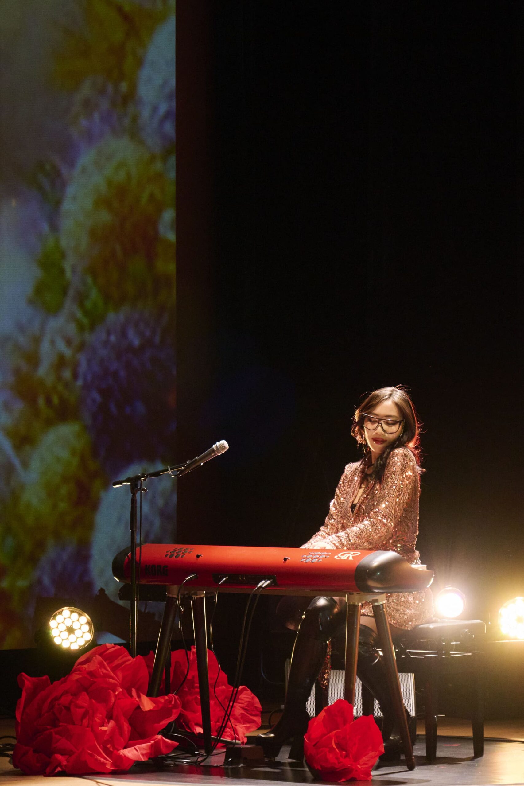 照明と映像演出が重なり合い、音楽と視覚が一体となった幻想的な世界観が描き出され、