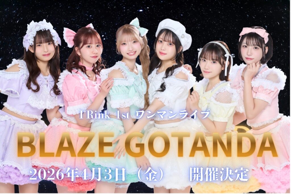 続けてオーディエンスを沸かしたのは、2026年4月3日(金)に「BLAZE GOTANDA」でI’Rink 1stワンマンライブ開催の発表。メンバーから緊張とワクワクの言葉がこぼれていくなか、生バンド編成で行われることも告げられた。
