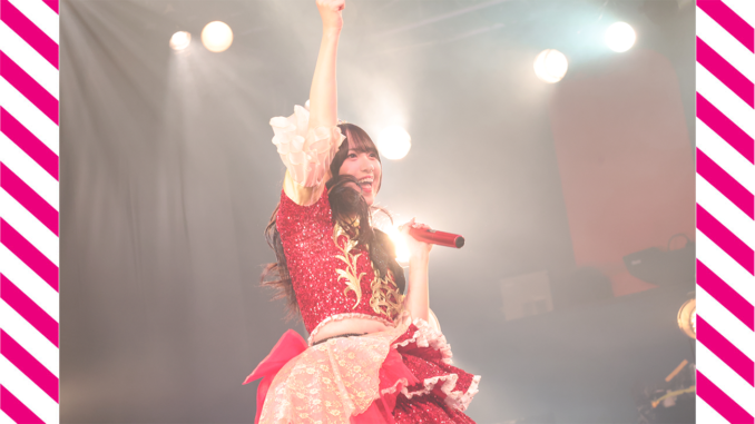 後半のブロックは、セトリリクエスト曲から。選んだのが、上月せれなのオリジナル曲の『Giant Killing』。以前はよくライブで歌っていたが、最近のライブでは耳にする機会が少なかったことからのリクエストだったが、改めて、熱い血潮を全身に巡らせて雄々しく歌う姿に触れ、同じように気持ちを熱く滾らせていた。拳を力強く振り上げ、勇ましい姿で歌う上月せれなに向けてたくさんの拳が突き上がれば、荒ぶる声が張り上がる。まさに、気持ちを熱く鼓舞する楽曲だ。