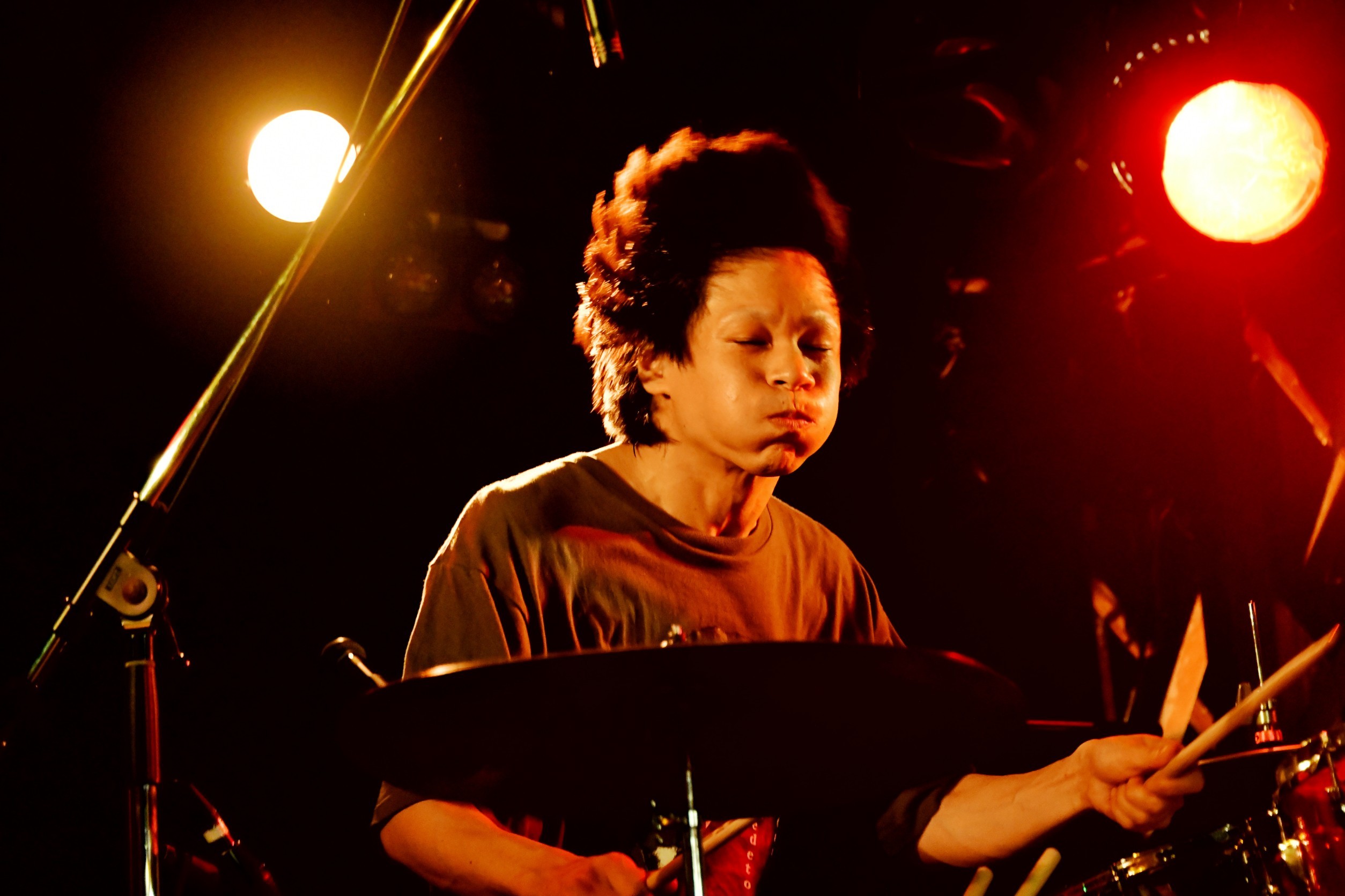 独特なシュールな世界観に危うさと愛嬌があり、破天荒でありながら確固たるテクニックを持ち合わせたドラマー。常に裸足で叩くその姿は野生的でありながら緻密に計算されたドラミングは最強。勢いづいた時の爆発力はもはや神がかり。今回もどんな”頑張るほどブス顔”に変貌を遂げるのか楽しみだ。