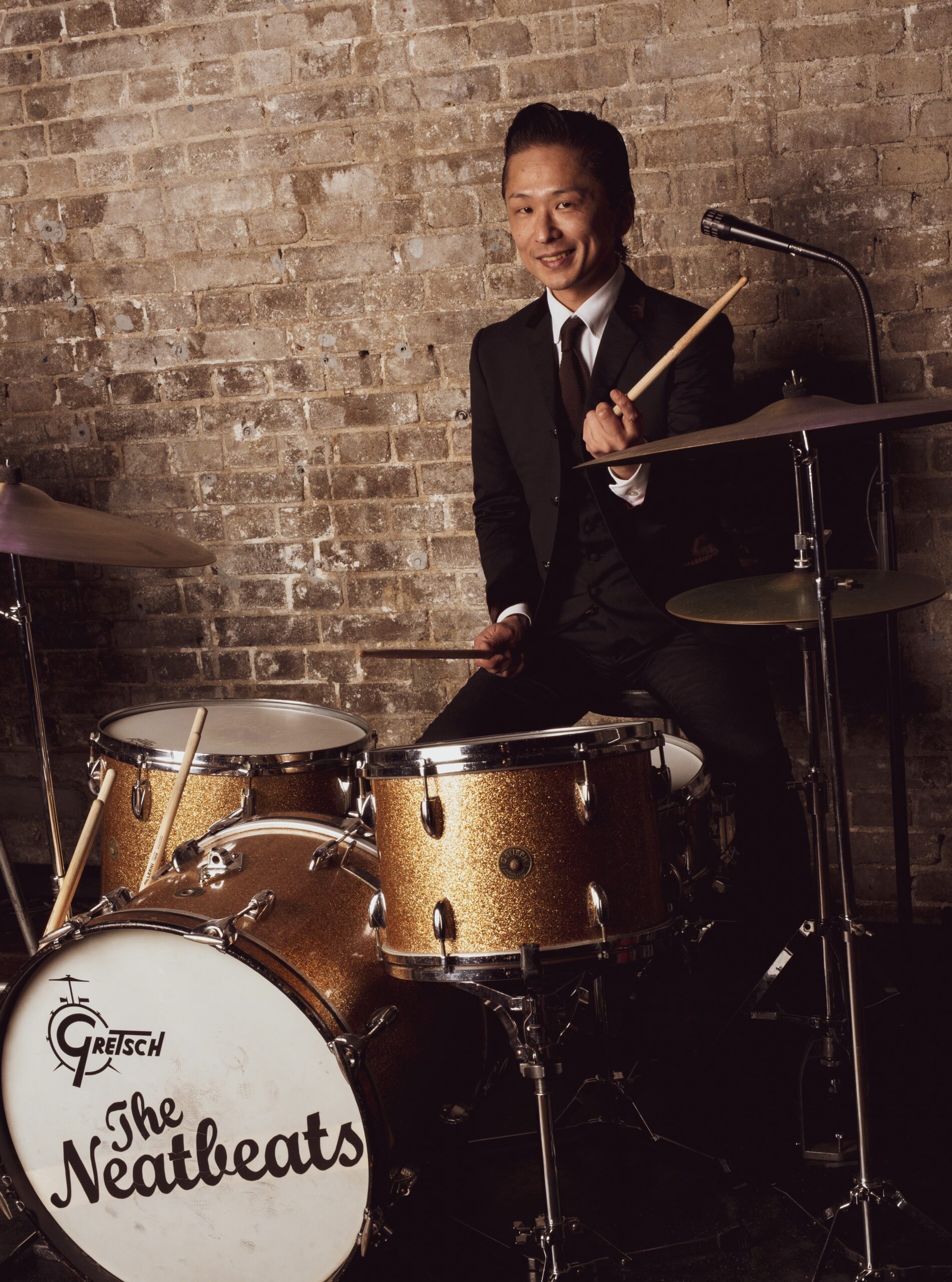 続いて、THE NEATBEATS(ザ・ニートビーツ)のドラマーとしてロックレジェンドの域に達する中村”MR.MONDO”匠。リバプール・マージービートサウンドを直球で叩き上げる彼のスタイルはキレ味鋭く、観客を魅了してゆく。