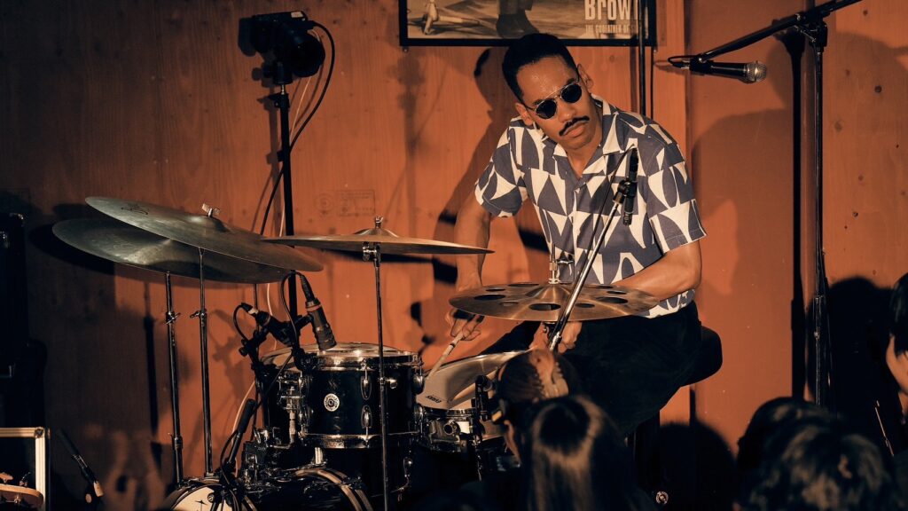 アフリカと日本にルーツを持つ彼。即興プレイを得意とし、超絶テクを持ちながら、アーティスティックに叩く姿は独特な世界観を醸し出す。その場の対応力は期待を裏切るアレンジも飛び出し、さらに歌もギターも得意で、ウィットにとんだ人柄がドラミングにも滲んでいる。まだ20代であり、期待値が無限大だ。