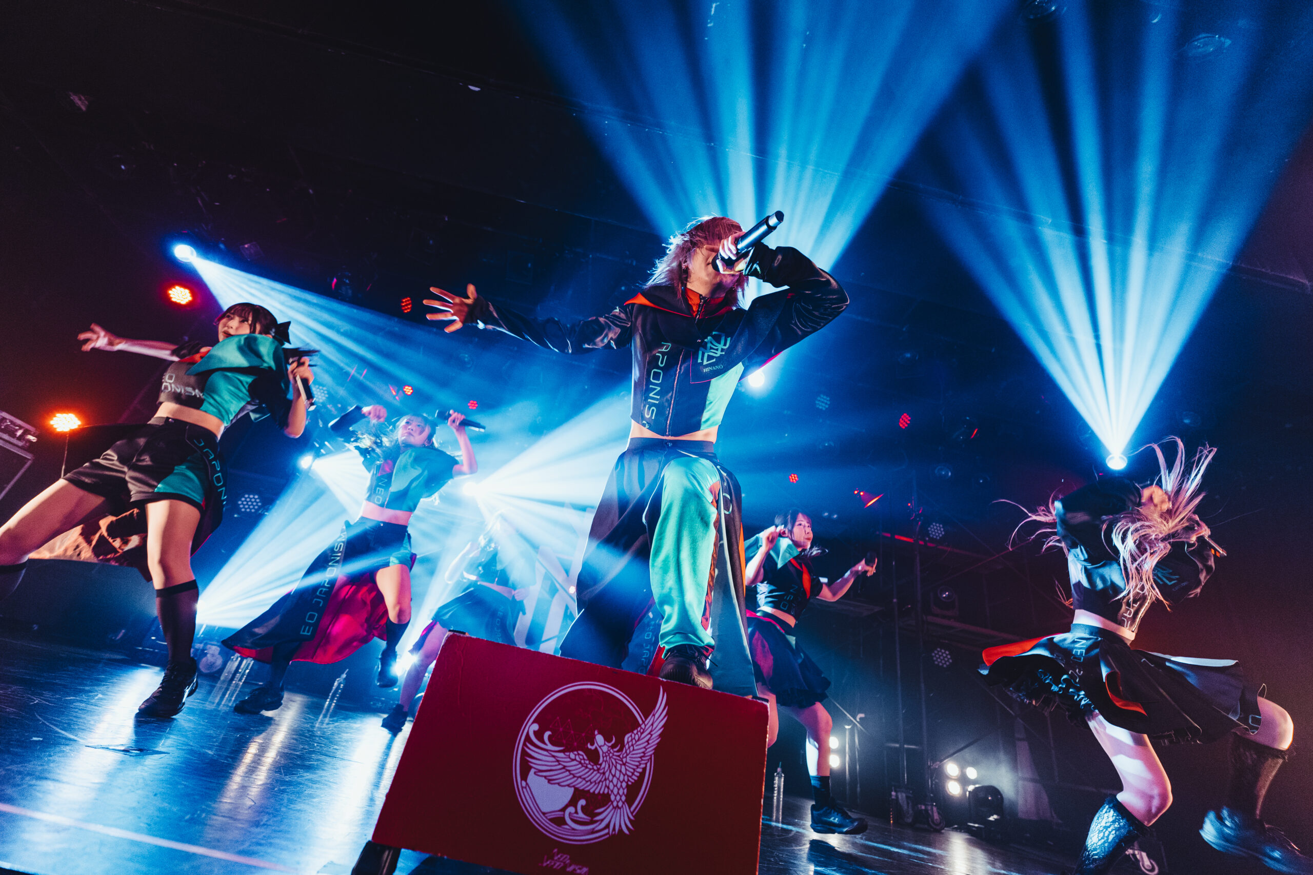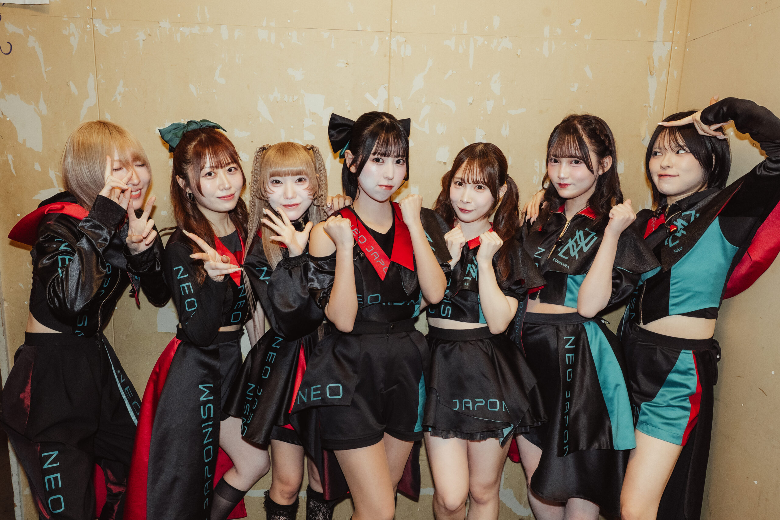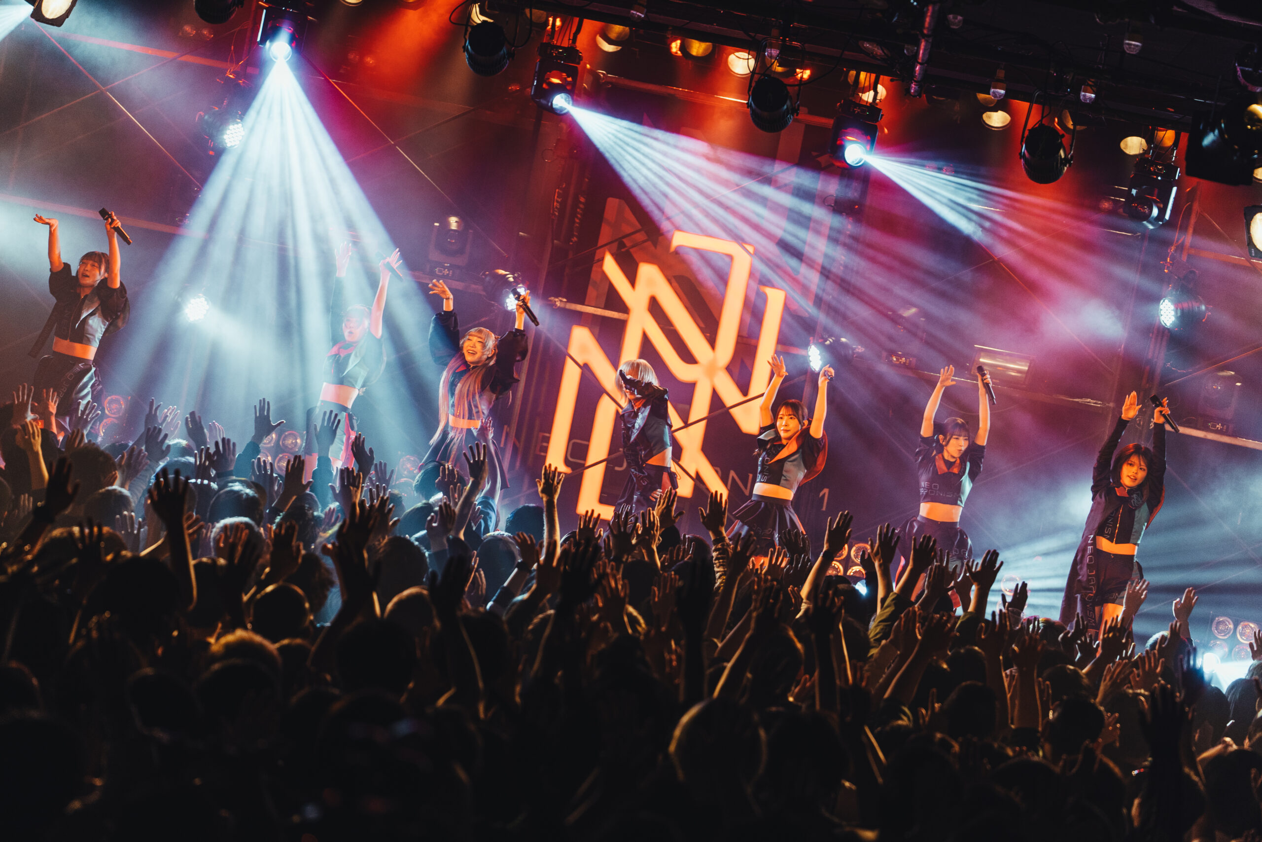 NEO JAPONISMが掲げる”闘う”とは、困難から逃げない意志であり、己に打ち勝つ強さのこと。2019年の始動以来、鎌倉能舞台や築地本願寺でのワンマンライブ、1ヶ月に及ぶアメリカ横断ツアー(全15公演)の完遂など、既成概念に捉われない活動を展開。ロック、ダンスミュージック、ポップスを自在に往来するキャッチーな楽曲と、全員がセンター級の圧倒的なスキルを武器に、観る者を熱狂させる唯一無二のライブパフォーマンスで注目を集めている。今年1月に本多ともはが新メンバーとして加入することが発表され、この日は7人体制での初ライブとなった。