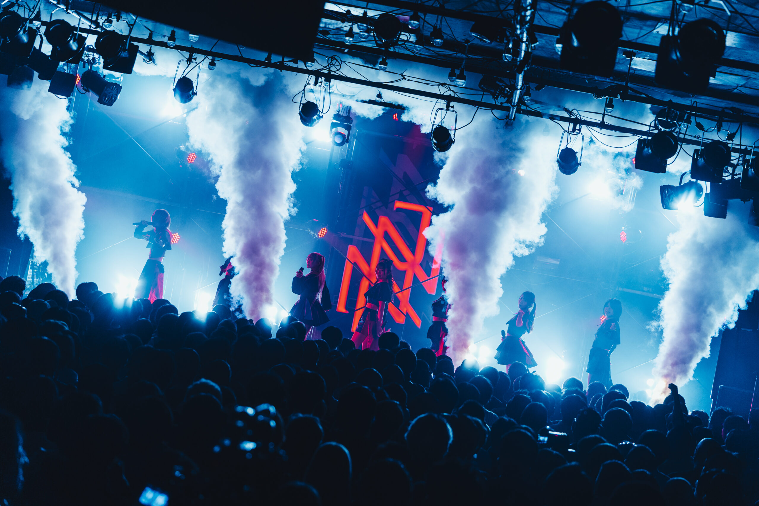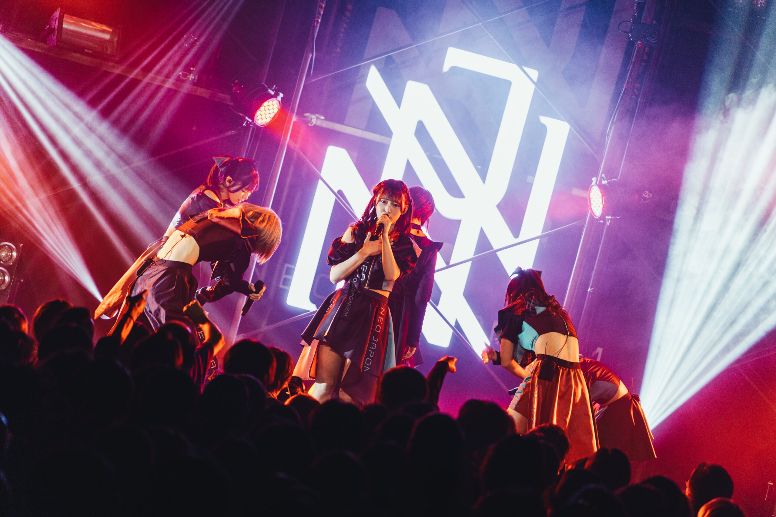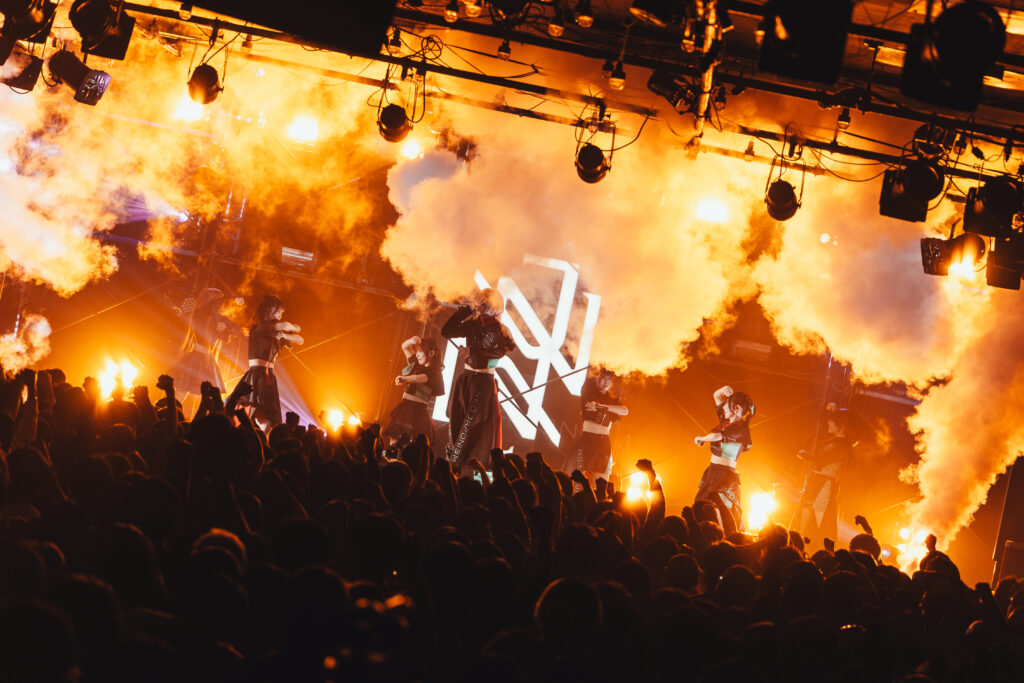 NEO JAPONISMが掲げる”闘う”とは、困難から逃げない意志であり、己に打ち勝つ強さのこと。2019年の始動以来、鎌倉能舞台や築地本願寺でのワンマンライブ、1ヶ月に及ぶアメリカ横断ツアー(全15公演)の完遂など、既成概念に捉われない活動を展開。ロック、ダンスミュージック、ポップスを自在に往来するキャッチーな楽曲と、全員がセンター級の圧倒的なスキルを武器に、観る者を熱狂させる唯一無二のライブパフォーマンスで注目を集めている。今年1月に本多ともはが新メンバーとして加入することが発表され、この日は7人体制での初ライブとなった。