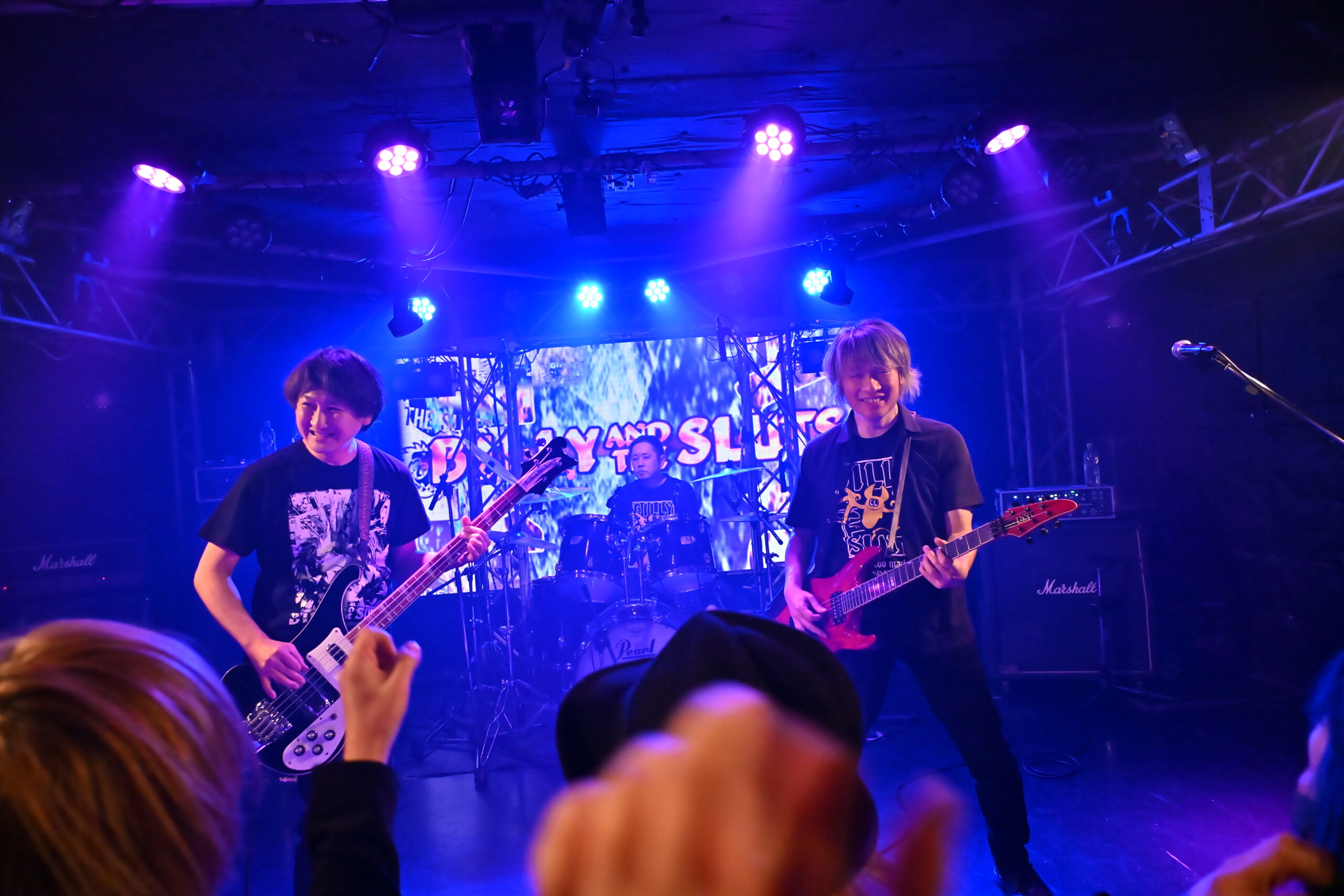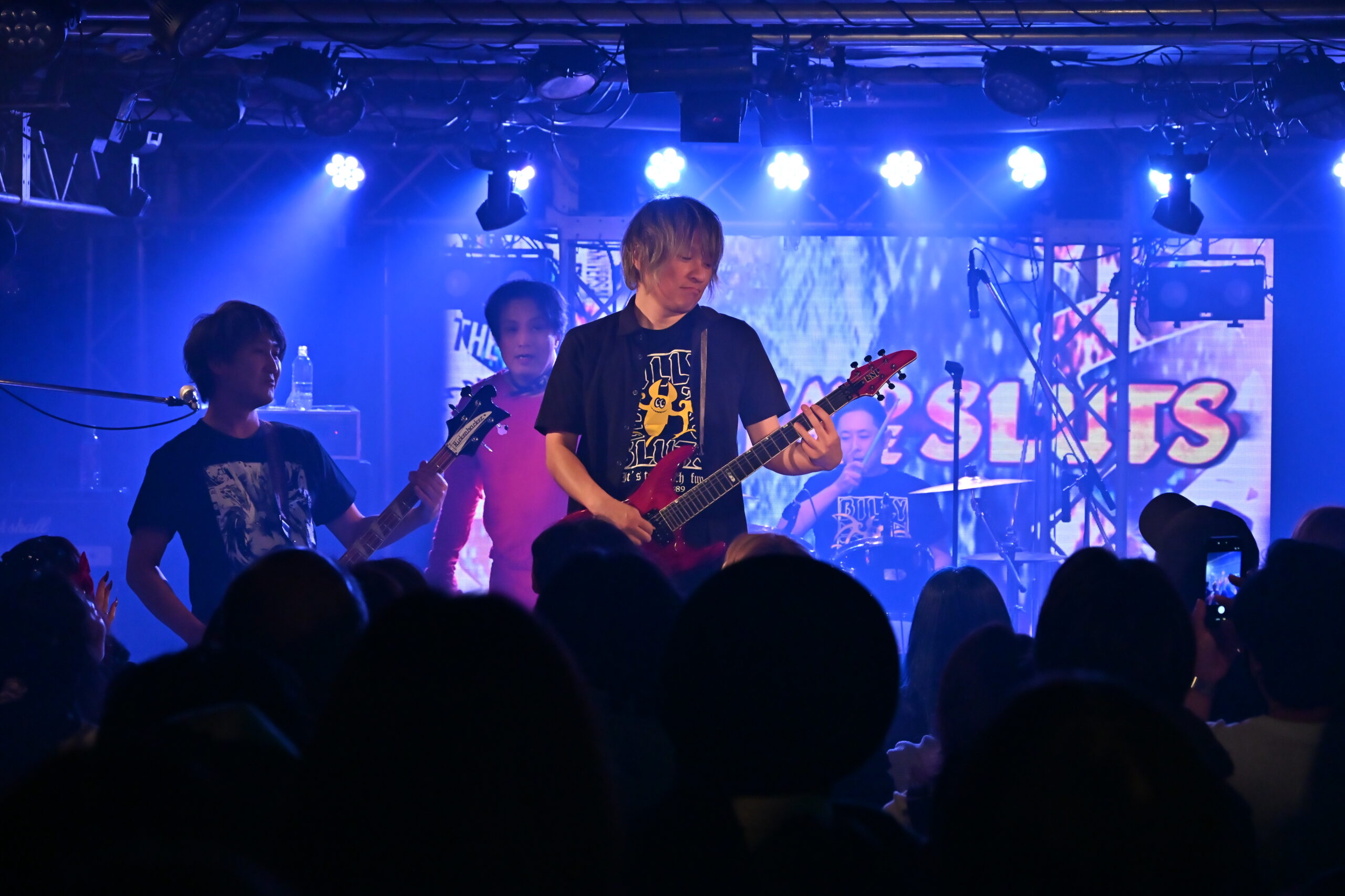 ここからは、さまざまなミュージシャンがBILLY AND THE SLUTSのライブに飛び入りで参加。『FEEL SO GOOD LUCK』では、関西FREE-WILL RECORDS FAMILYのLUCY(Red Tail Cat)とSHELLA(Amphibian)がヴォーカルで、MIZUKI(La mise a mourle)がギターで参加。打ち上げの席では見られても、ステージではけっして当時から見ることのなかった景色が目の前に広がっていた。この曲では、LUCYとSHELLAの2人が交互に歌い、SAMMYは煽りに専念。その後、自身も歌に参加するが、基本は、LUCYとSHELLAに歌を任せていた。たとえヴォーカルが変わろうと、一緒にシンガロングしたくなる往年の名曲の魅力や良さは、変わることなく輝いていた。