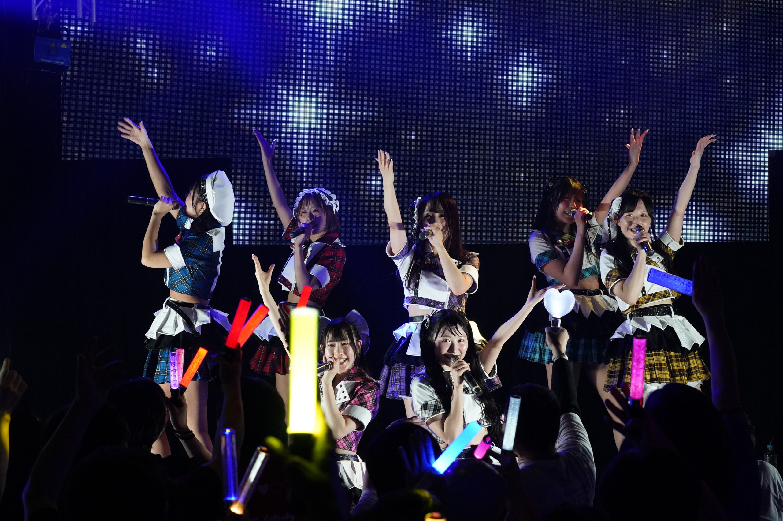 「あなたとの思い出がどこまでも届いて空に映りますように」の言葉に続いて、『STAR LIGHT~星色のこの気持ち、空に映れ~』を歌いだした。「STAR LIGHT」の声を合図に楽曲が躍動するや、待ってましたとばかりにフロア中から「お前が一番」コールが上がれば、熱を抱いたエールが飛び交う。まだまだ未完成の新メンバーたちをさりげなくカバーしていく他のメンバーや、その姿を温かく見守りながら熱い声を上げる観客たち。どんなに時が経とうとも、ずっと未完成の危うさを感じながら、一緒に欠けたピースを埋めていける。それを楽しめるのは本当に素敵なことだ。