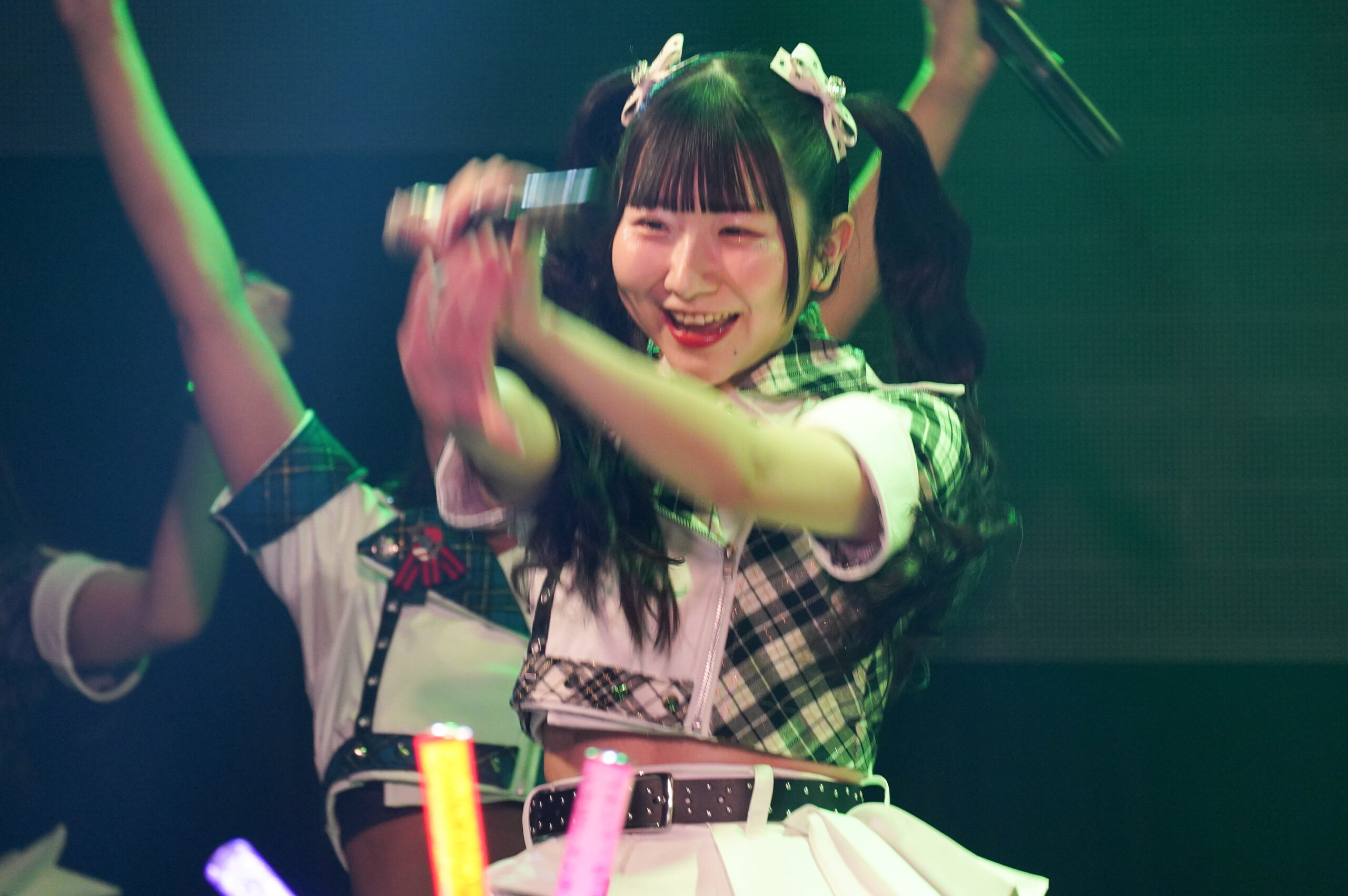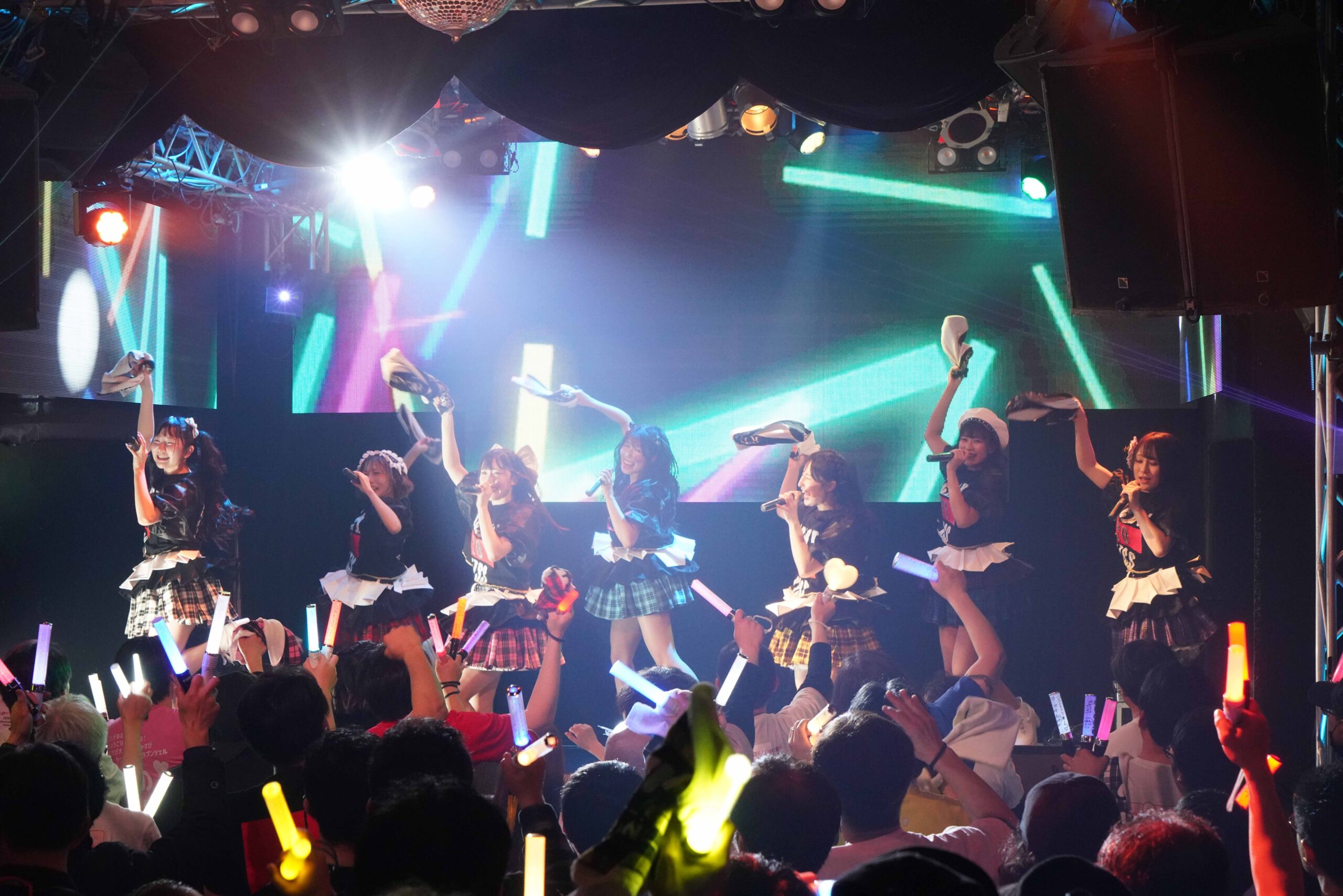 この空間を、汗まみれで楽しんだあの夏景色へ巻き戻すように、彼女たちはタオルを手に、この場を猛暑以上のアテアチの空間に塗り上げようと、『猛暑モーション』を元気いっぱいに歌っていた。メンバーたちがタオルを振り回すたびに、フロアでも拳やタオル、無数のペンライトが回り続けていた。
